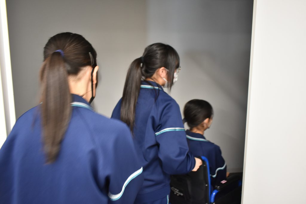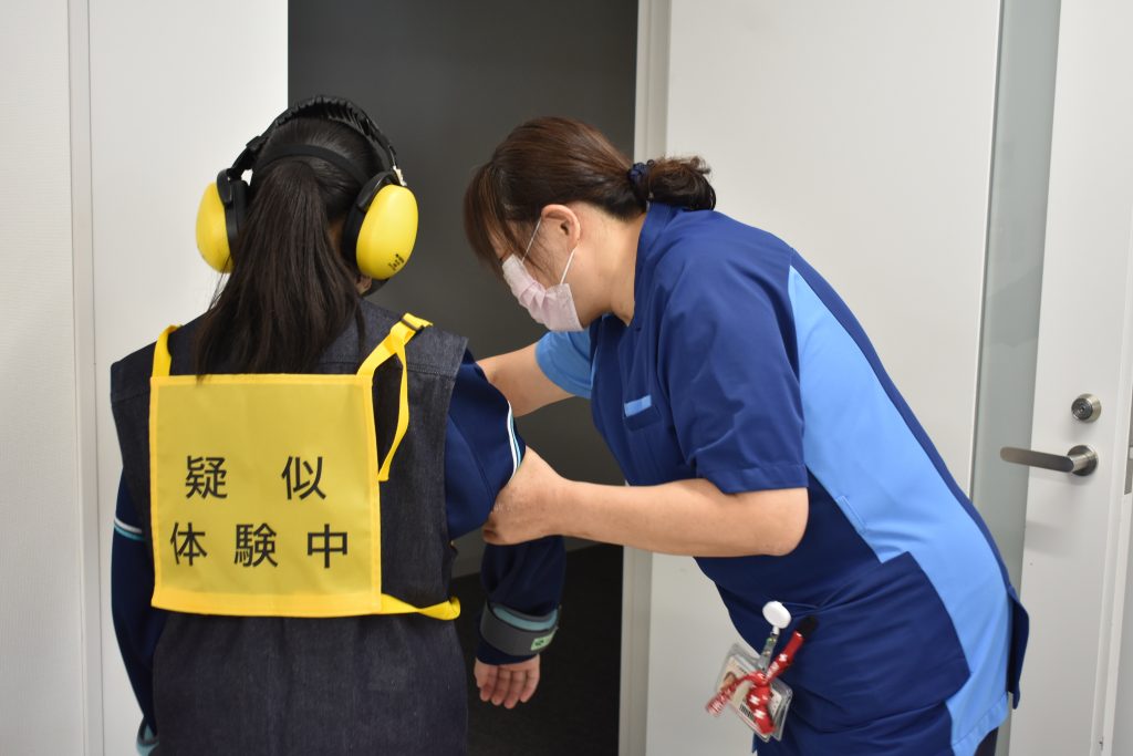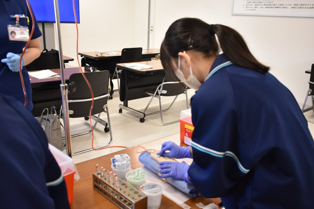 1日目は病棟で患者様とお話ししたり、実際に清潔ケアなどを体験していただきました。また、模擬採血、車いす操作、高齢者体験も行いました。
