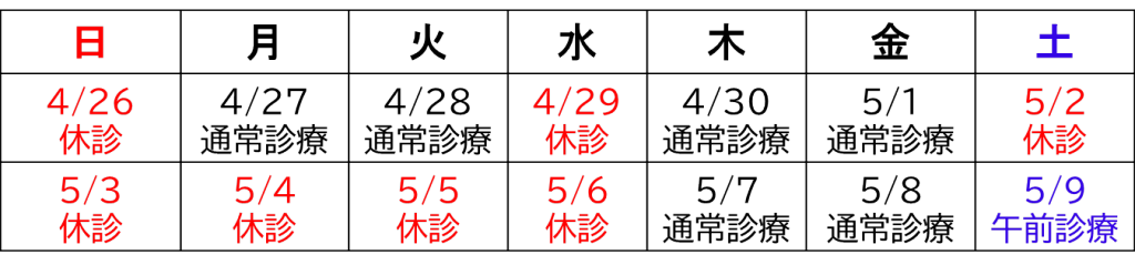 休診中も平常通り診療いたします。詳しくはこちらをご覧ください。